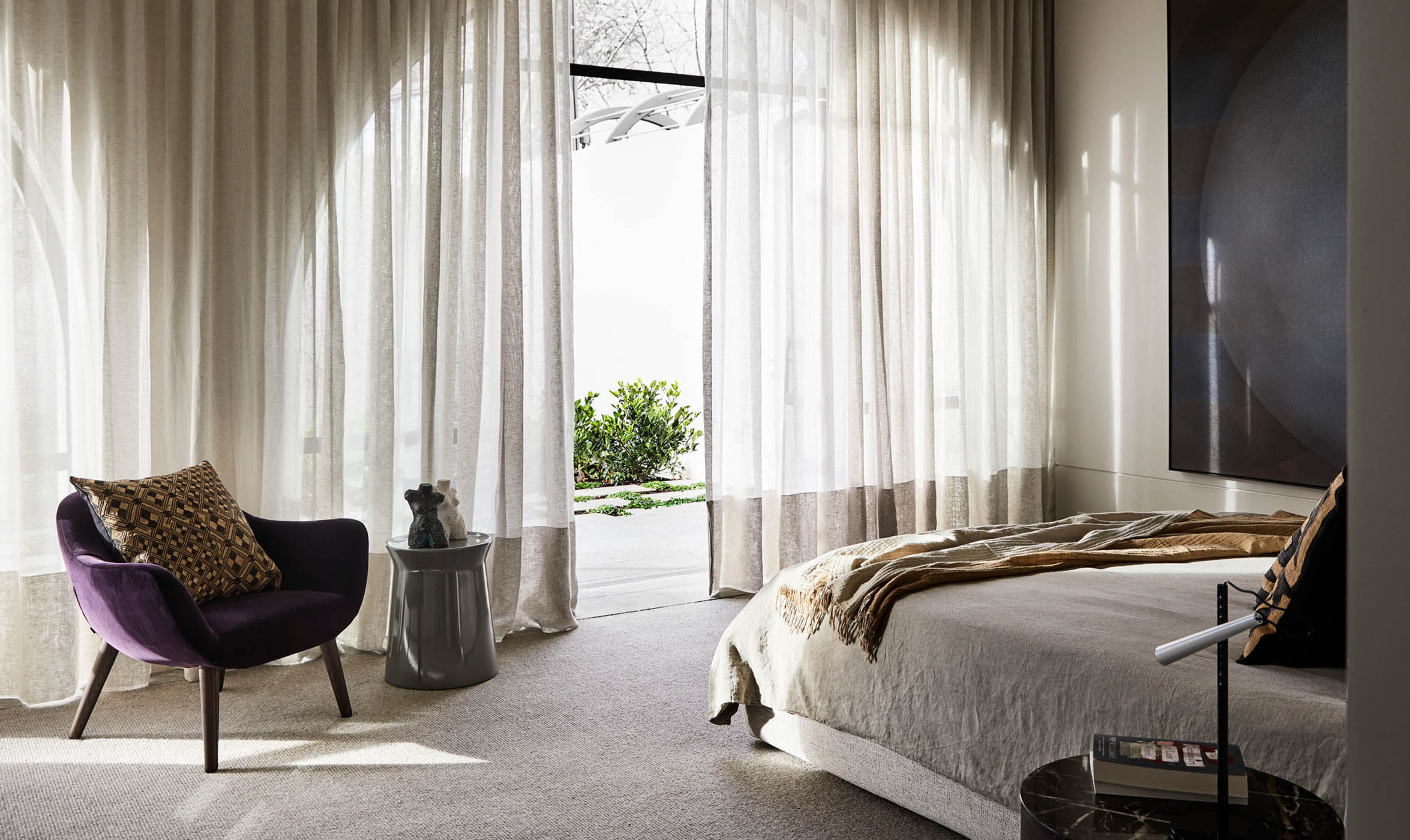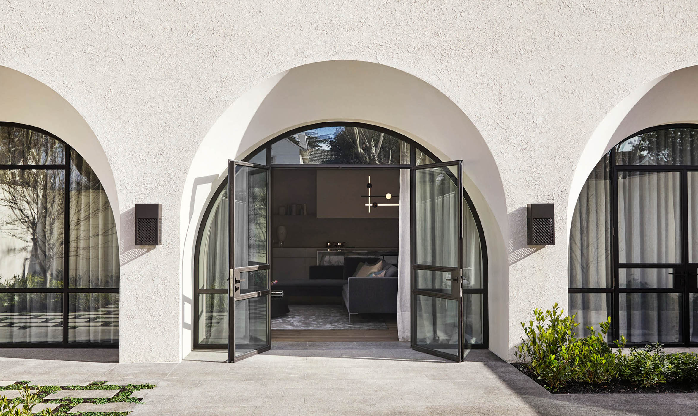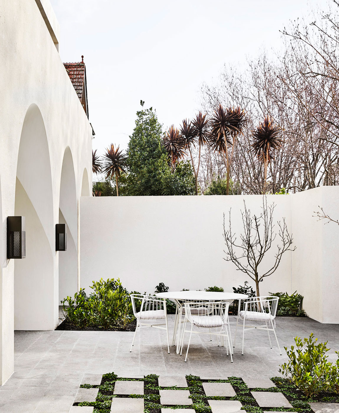 Soft ivory gauze curtains sway in an arched window; a colourless sculpture sits in a white-washed alcove. Are we ensconced the luxury hotel in Mykonos, or walking into the new home of a discerning Armadale local? Immersed in greenery, Orchard Piper’s Huntingtower Road designed by Jolson Architecture is characterised by a white colonnade structure inspired by European-style loggia. The architecture is nestled in a serene landscape with lush, private courtyards created by Myles Baldwin Design.
