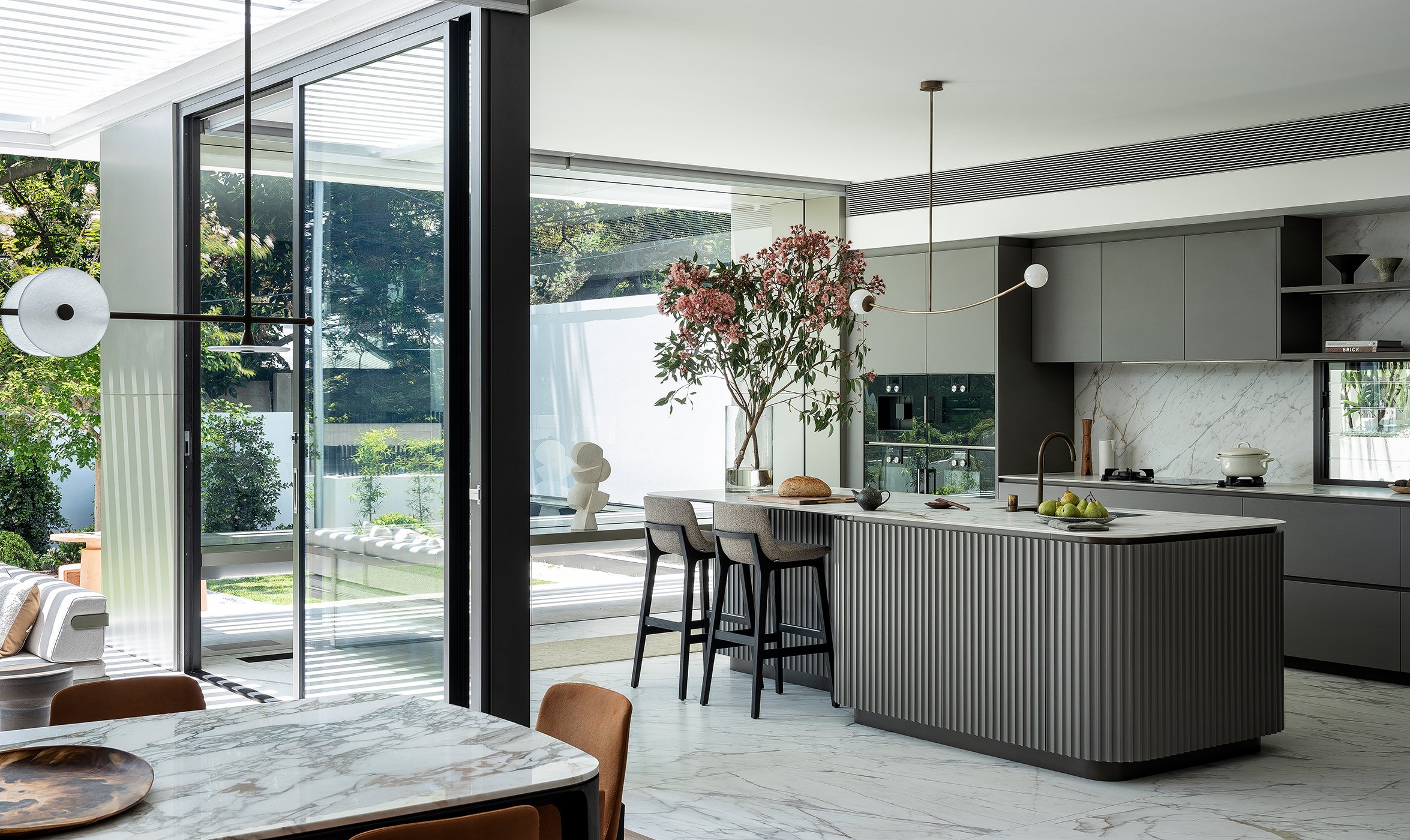 Talia: Whilst we wanted the homes to be multigenerational, the family also wanted completely different design aesthetics. At the same time each had a say in how the other house worked because they would be using the houses together so they also needed a connection and that was challenging. For example, one of the clients grew up in Australia and was happy to have his house furnished and designed in a typically Sydney way, quite relaxed and tonal with highlights of marble. Whereas his mother wanted to replicate her kitchen in China and bring in lots of pattern in the stone, wood and grain. So each house has its own personality, they were two clients from different generations and cultural influences so the interiors needed to respond in that way.