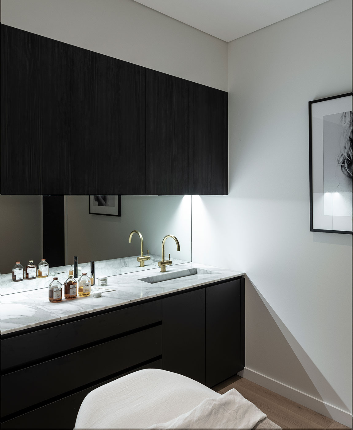 Three dedicated treatment rooms each contain a custom designed Poliform Alea kitchen, which bring an elegant yet highly functional solution to the clinics work areas. An Artex kitchen was added to the rear, this defining architecture allows for elevated, comfortable dining for Melanie’s committed staff, as well as plenty of storage.