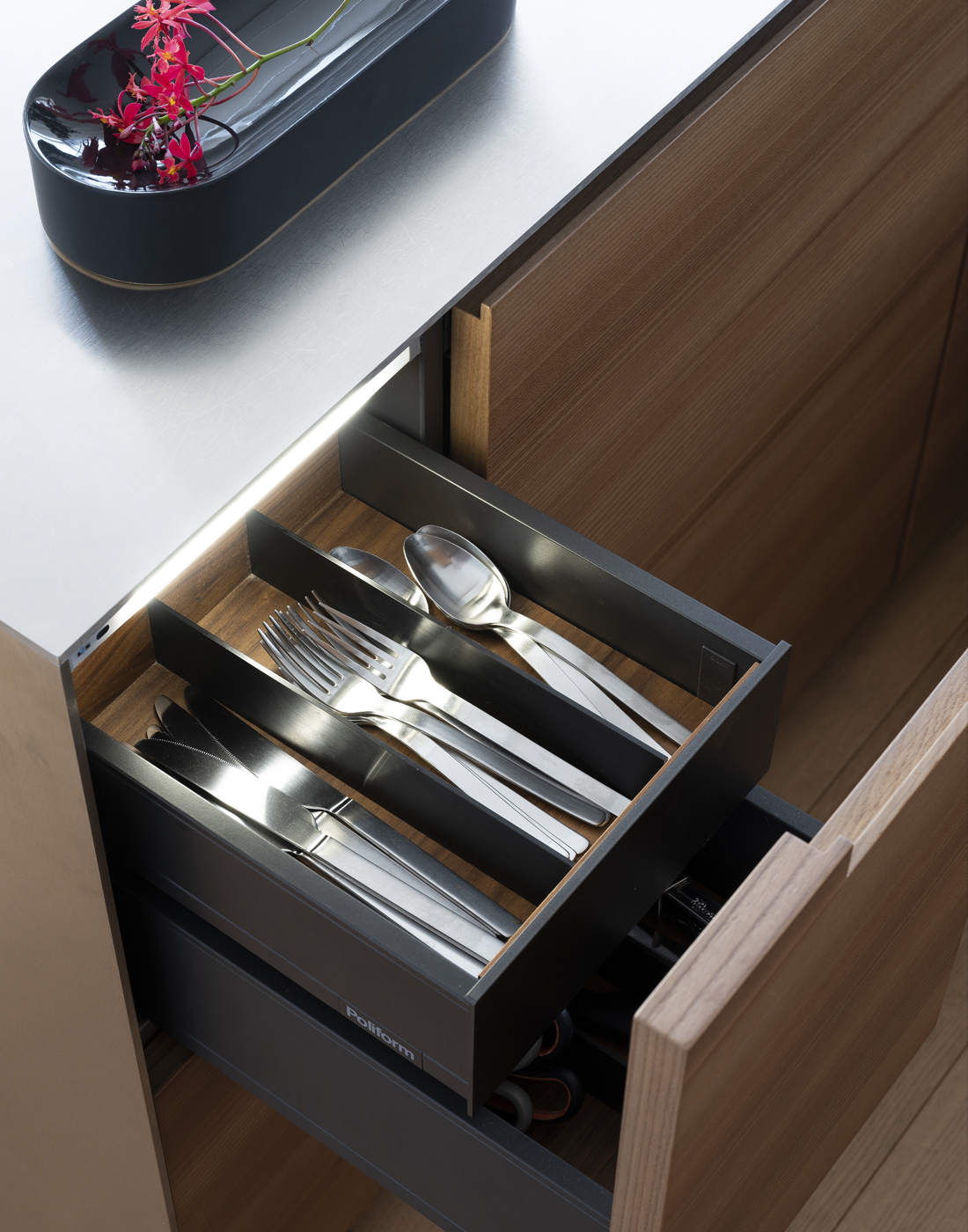 Being someone who knows a lot about the creation of high-end residential appliances Paul says he appreciated Poliform’s precision. Having worked with international companies including Siemens in China and Breville at home, as well as several overseas premium brands to create minimalist toasters, kettle, knives and coffee machines for very particular,contemporary clients, he likes his lines light and his volumes maximised, products that when complete are free of extraneous detail.