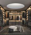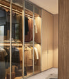 At the heart of each design is adaptability — modular compartments, adjustable shelving, and tailored drawers all allow the wardrobe to be built around different lifestyles. Finishes range from matt lacquers and textured melamines to rich timber veneers and reflective glass, ensuring each system aligns with contemporary and layered interiors. Integrated LED lighting, recessed with care, illuminates interiors softly; highlighting textures and colours while creating a sense of calm.
