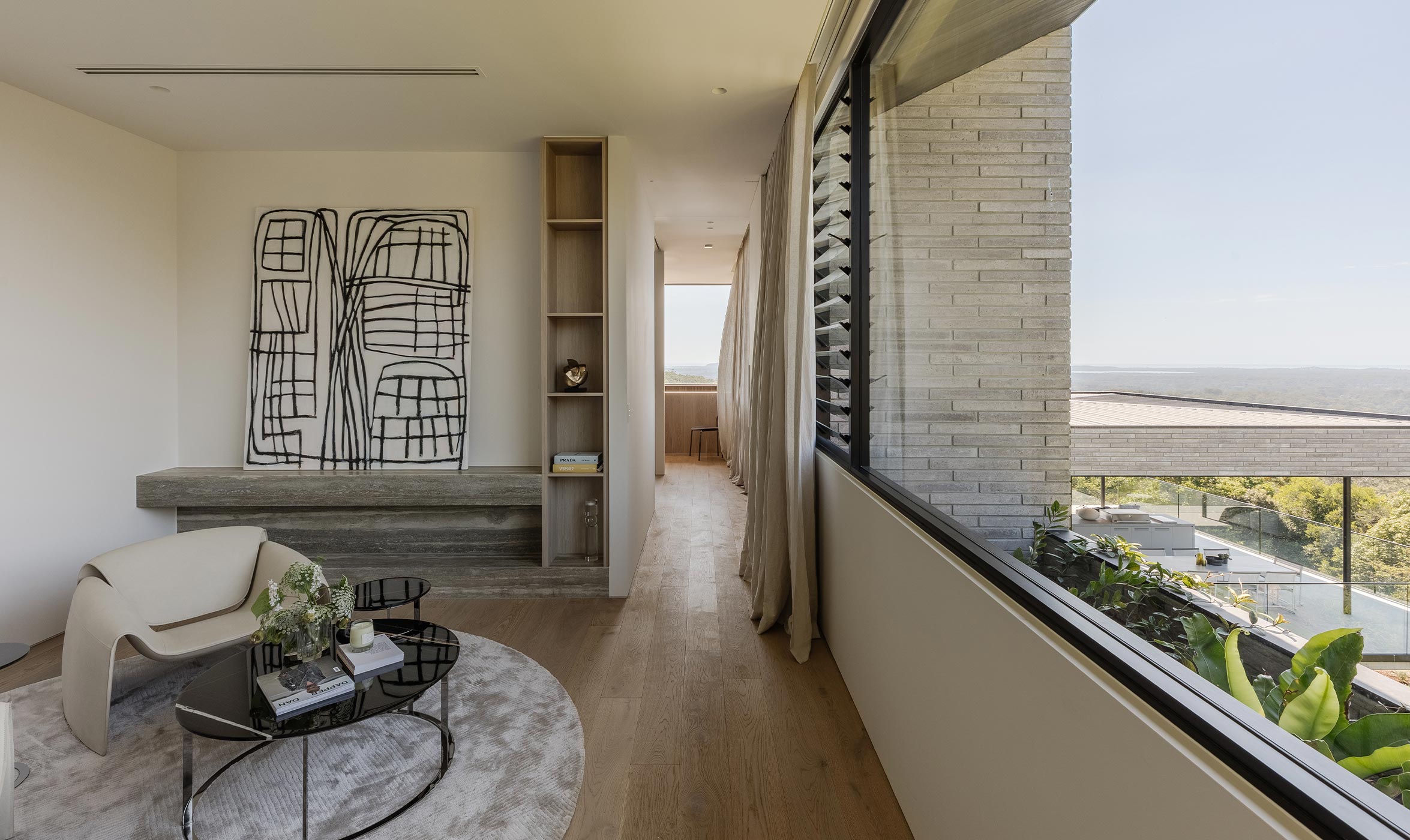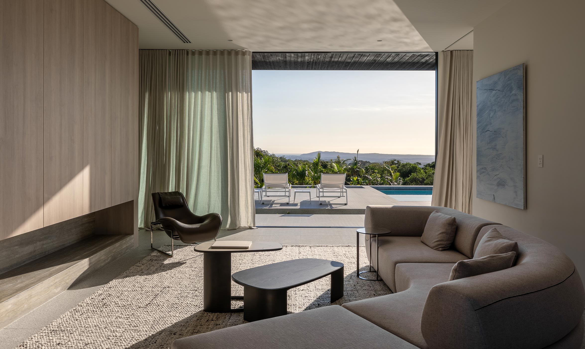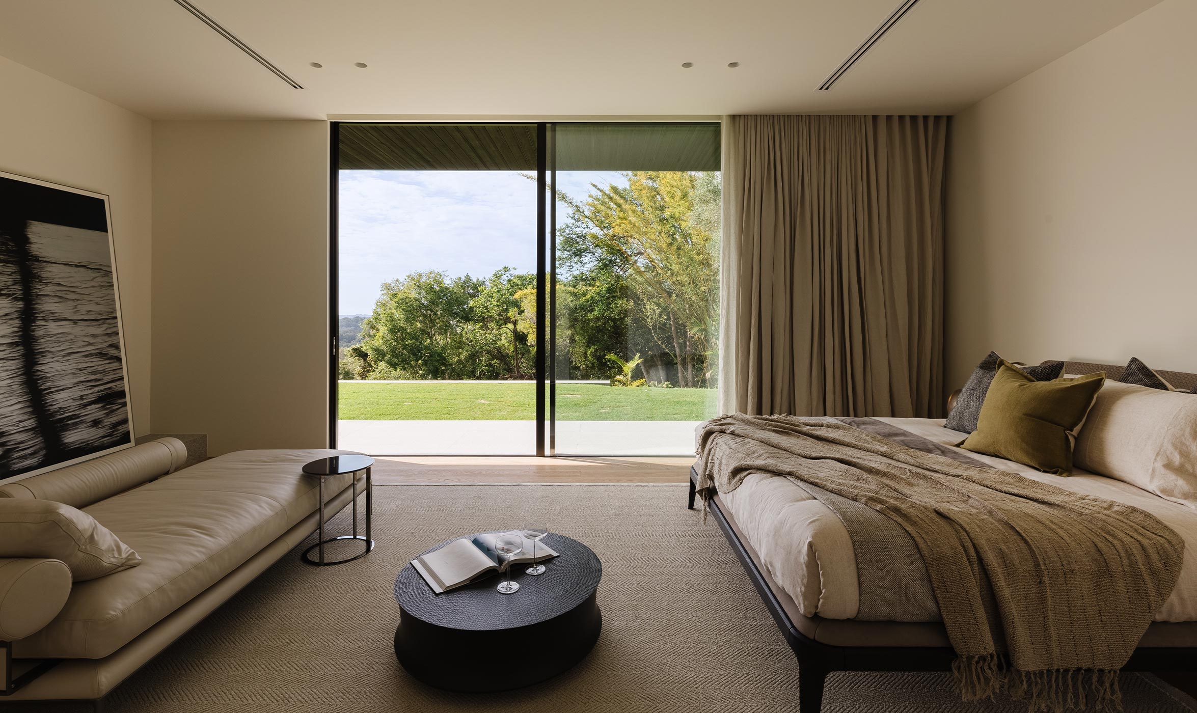 For Zernich and his team, furniture and art were always going to be part of the concept. Zerni collaborated with Space Atelier and Poliform, a team dedicated to curating timeless furniture collections, and with art consultant Jan Manton, who runs a leading contemporary gallery in Brisbane. Space Atelier and Poliform worked closely with Zerni and Minnow Studio for the last eight months. ‘It was a collaborative approach, understanding the importance of the architecture and all the finishes and fixtures. But we also appreciated Jayden’s vision. There was a sense of confidence and clarity from the start,’ enthuses David Hartikainen, Head of Interiors and Business Development Asia Pacific for Space. For Hartikainen and his team, which included input from stylists and landscape architects, The Conlon Group, it was paramount that the furniture, objects and art appeared recessive to the architecture and its majestic surrounds.