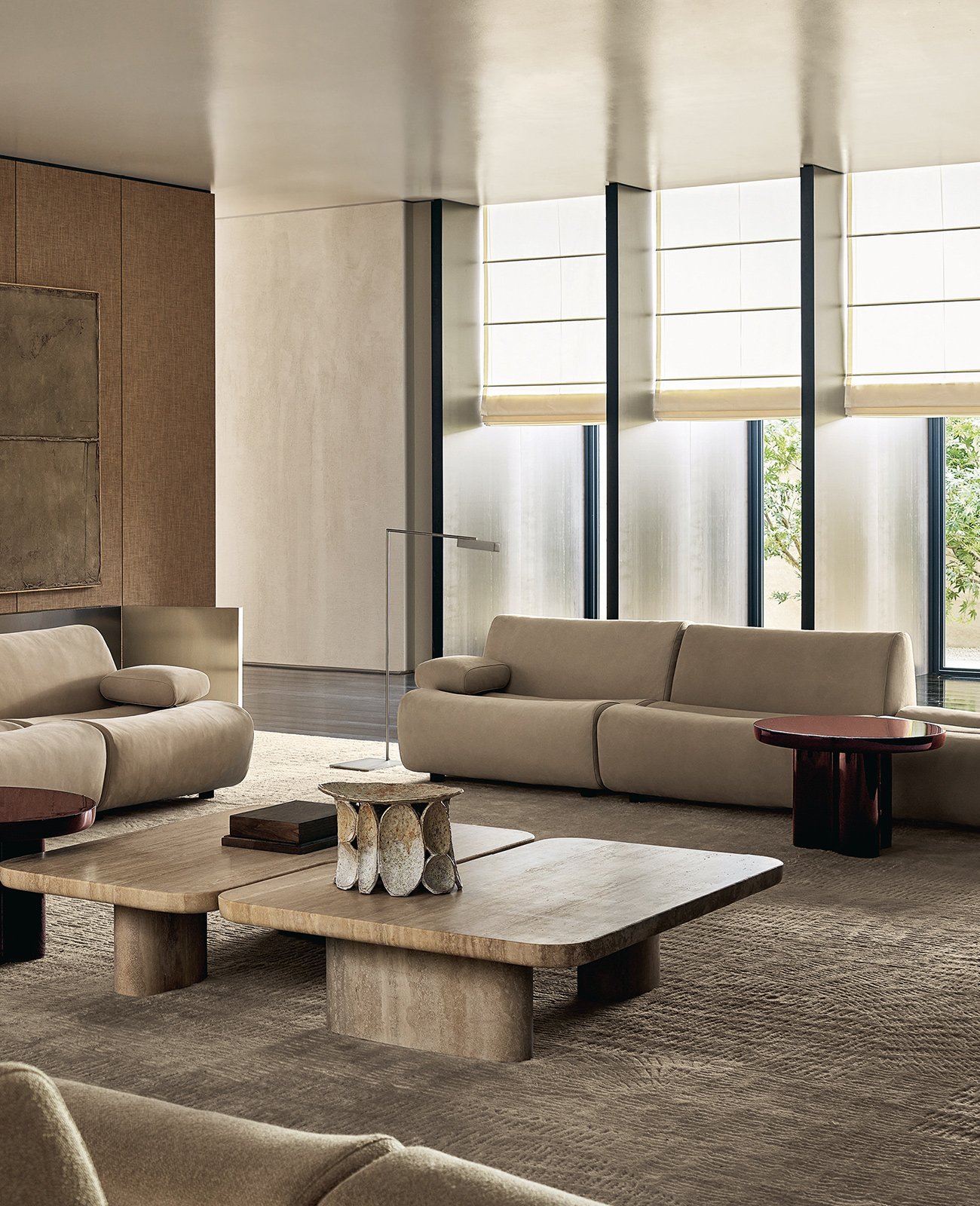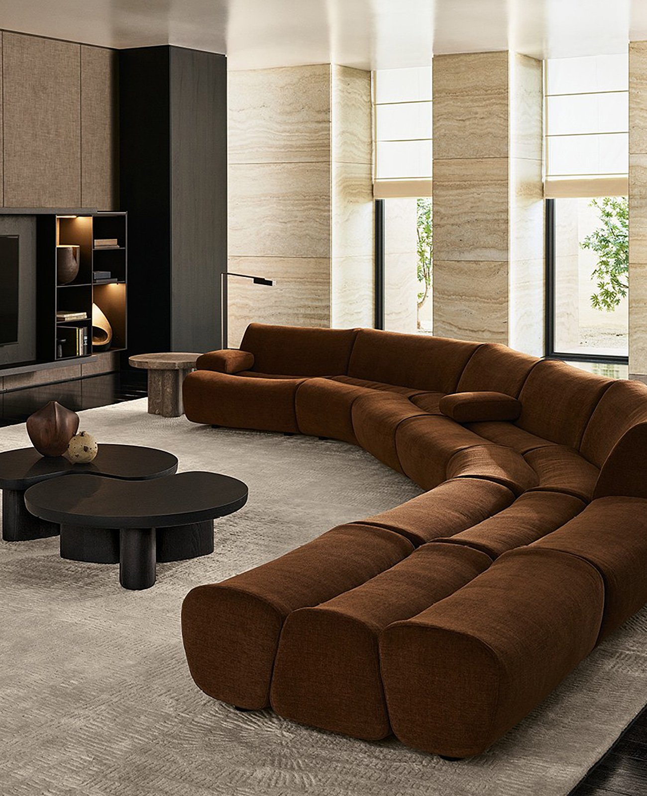 With Ernest, Jean-Marie Massaud tackles the theme of comfort in a radical way. The result of this approach, which makes modularity its strong point, is a sofa with soft, deconstructed volumes inspired by a down cushion for natural comfort. The juxtaposition of the different elements results in small or large, linear or L-shaped sofas, without ever losing the expressive power of the design.