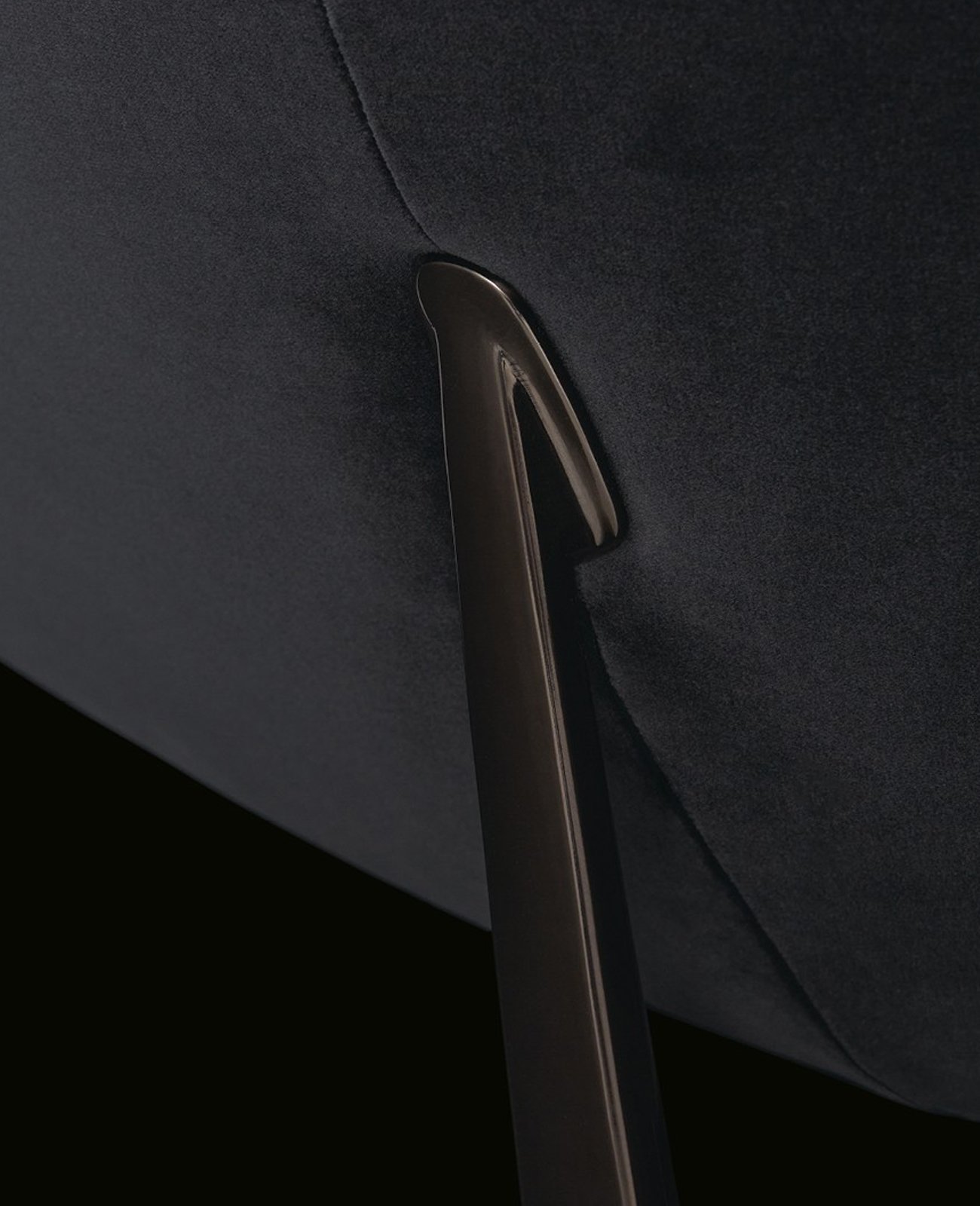 With its curved lines and soft forms, Orbis designs an intimate and cosy space within the living room. The collection consists of two sofas and an armchair with an enveloping backrest, a perfect synthesis of modern design and contemporary technology. In both the sofas and the armchair, the seat, raised off the ground by a thin leg inspired by jewellery workmanship, is comfortable and invites conversation.